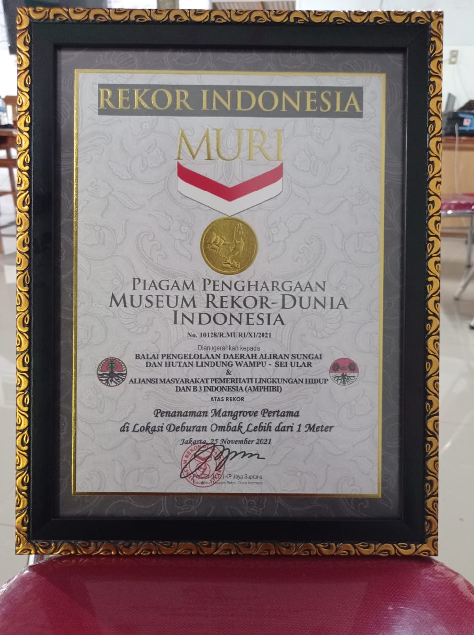 Tepatnya di Mall Of Indonesia (MOI) Kelapa Gading Jakarta Utara, Museum Rekor Dunia-Indonesia kembali mencatat sejarah Karya anak bangsa dalam tajuk “Penanaman Mangrove Pertama di Laut Dengan Jarak 100 Meter Lebih Dari Bibir Pantai “.
