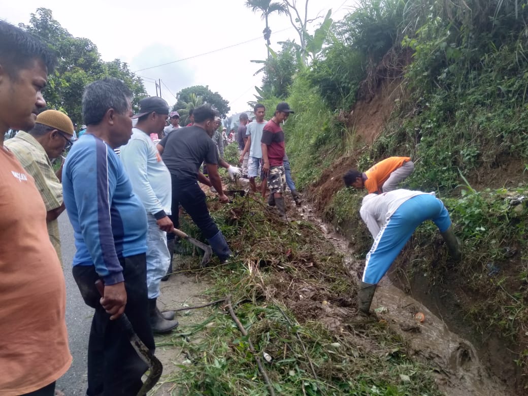 Masyarakat bahu membahu membersihkan drainase Jalan utama Jorong Andaleh, Nagari Andaleh Baruh Bukik dan kampung dibawah komando Afrizal Nanang Wali Nagari Andaleh Baruh bukik.
