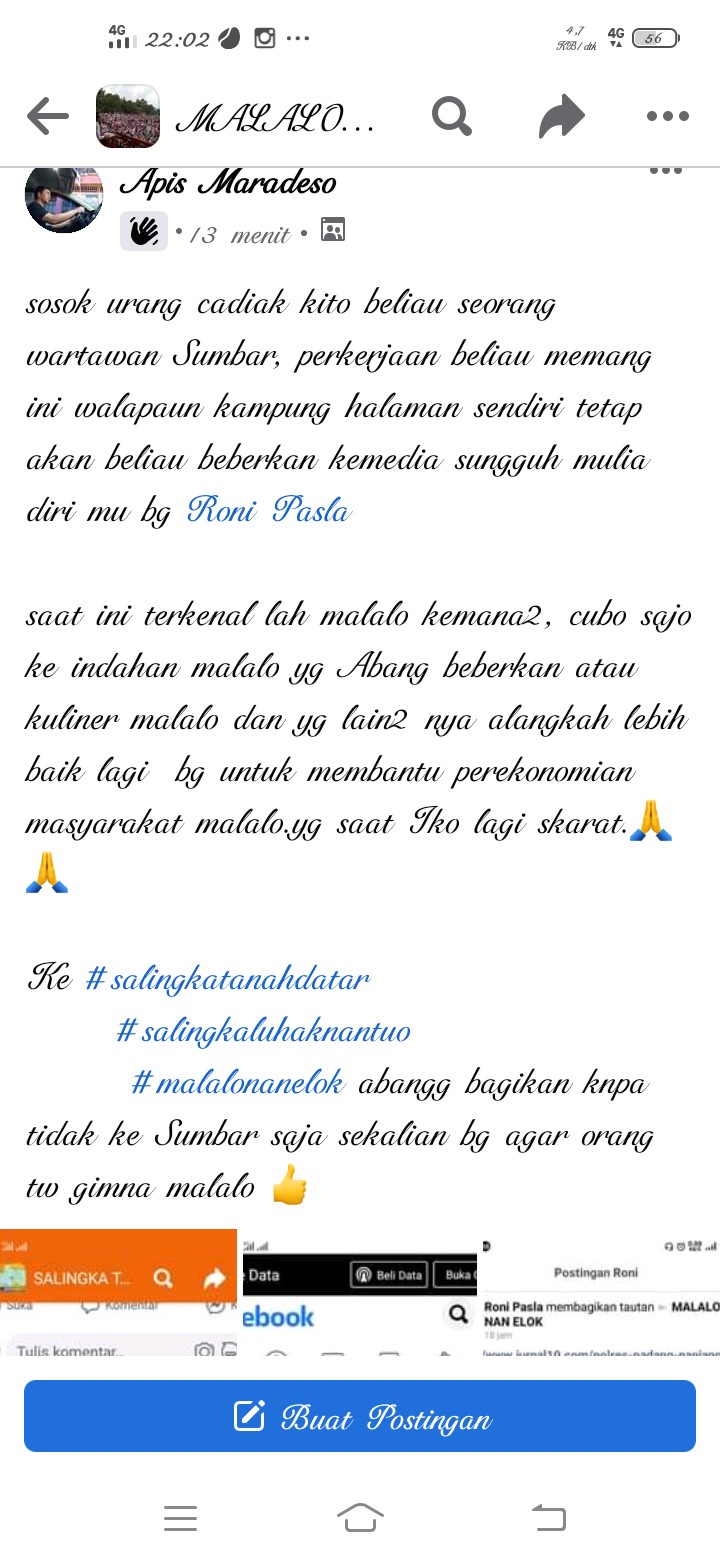 Roni Paslah : Pengiringan opini menjelekkan Nagari terhadap nama saya oleh akun Facebook Apis Maradeso